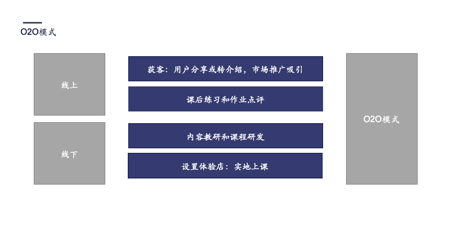 在教研環(huán)節(jié),機構(gòu)利用線下實際教學經(jīng)驗打磨課程,形成標準化教研體系輸出; 在營銷環(huán)節(jié),線上負責獲客營銷,通過構(gòu)建社區(qū)或平臺,獲取用戶和流量,提供輕量化錄播課程,并同時引導用戶到線下(直營或加盟機構(gòu))上課; 在上課環(huán)節(jié),在一二線城市或者直營店采用班課模式,營造學習氛圍,提升學習體驗,對于三四線城市或者加盟店,采用雙師模式,解決師資缺乏的問題; 在課后練習環(huán)節(jié),在線上系統(tǒng)中布置相關(guān)課后練習,督促孩子完成練習并進行作業(yè)點評,同時定期制造孩子作品集,并鼓勵家長分享,一方面提升家長參與度,提高續(xù)費率,另一方面,形成用戶自然口碑傳播,提升轉(zhuǎn)介紹率。 |